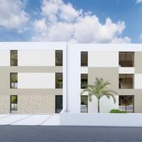 Four identical three-storey four-apartment sunny villas with two two bedrooms and two three bedrooms homes